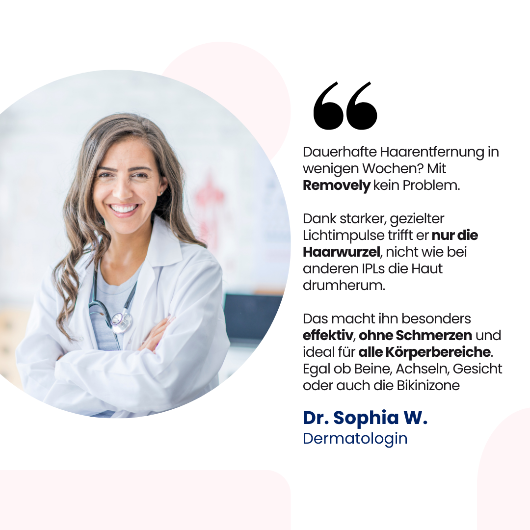 Ja, IPL-Technologie ist klinisch getestet und bewährt. Die Removely IPL's sind so konzipiert, dass sie sicher und effektiv sind, wenn sie gemäß den Anweisungen verwendet werden. Für zusätzliche Sicherheit wurde das Gerät von Experten geprüft.